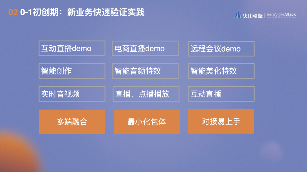 针对初创期的业务,也就是从0-1构建业务的阶段,提供了一站式的全链路方案,覆盖内容的生产、服务、消费。