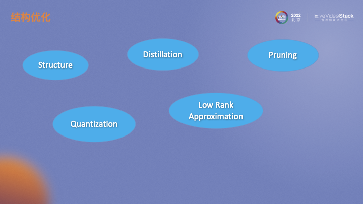 对于模型加速,选取一个合理的,对硬件友好的结构是基础。基于模型结构基础上,还可以通过一些方法对模型做进一步的压缩。模型蒸馏类似于一个迁移学习,将一个大模型的输出作为监督信息指导小模型的训练。模型剪枝主要是通过评估不同结构、不同通道的重要性对其进行剪枝。模型量化通常训练的权重是float32,我们通过对其量化成float16甚至int8,也可以加速运算。低秩分解认为深度学习模型权重矩阵非常大,可以将其近似分解成多个低秩矩阵来降低模型运算量。