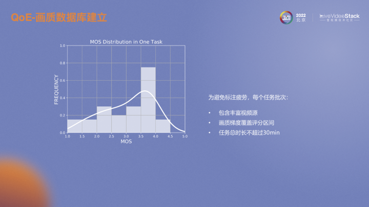 设置合理的视频序列也是需要考虑的。为了避免长时间单调标注过程中产生疲劳而导致数据失真,每个批次尽量差异化视频内容,并且在画质层面最大化覆盖评分区间,每个评估人员每次打分的时长不超过30分钟。