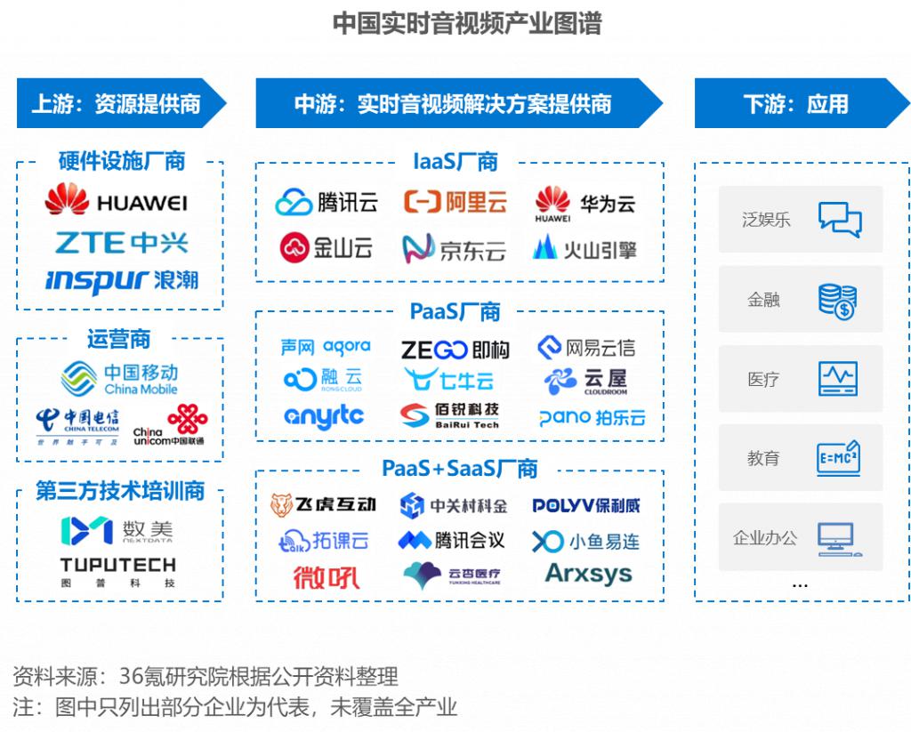 产业链:由上游资源提供商、中游 RTC 解决方案提供商和下游应用组成