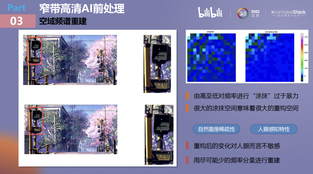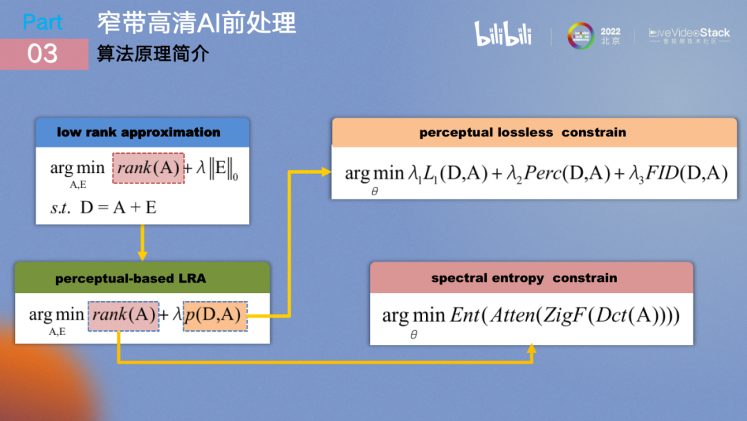高画部分到此讲解结束,接下来引入到低码部分。我们本次想要介绍基于低秩重构所做的AI窄带高清前处理算法。