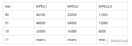 “free” 表示免费格式。如果正确的固定比特率(此类文件不能使用可变比特率)与下表中显示的不同,则必须由应用程序确定。“bad”意味着这不是一个允许的值。