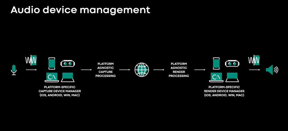 这样就可以获得低延迟、平滑的音频播放。在本次演讲中,我们将重点关注一个鲜为人知但很重要的组件,即音频设备管理,在解决了音频可靠性和无音频的问题,下图是放大后的音频设备管理组件。