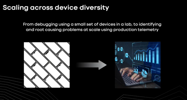 另一方面音频设备管理也十分困难,它是很容易影响到我们规模的数百万用户的一个边界案例。我们需要创新,使用遥测技术来识别问题并找出问题的根源,这样就可以修复它们,然后在生产中进行测试。我们对结束加密隐私的承诺意味着这必须在没有任何音频数据或任何用户身份的情况下完成,我们建立了一个完全符合隐私的框架,以便在通话结束时实现这一目标。