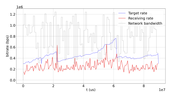 如图 2 所示,视频编码器理想情况下以目标比特率(即瞬时可用带宽)产生视频流,这意味着用较少的帧进行编码,每帧的质量可以得到改善。然而,如图 4 所示,由 FRC 引起的帧率降低可能导致带宽使用不足,因为传统的基于 GCC 的带宽预测算法过于保守,当可用带宽突然增加时无法及时上调预测带宽。因此,提出了一种基于 RL 的目标速率控制器来校准基于 GCC 的带宽预测,从而提高带宽利用率。