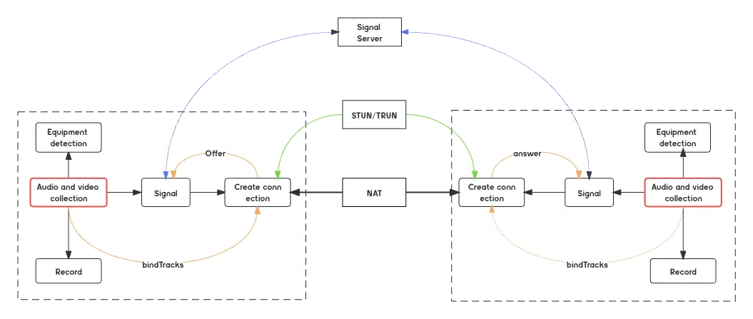 上图与第一篇文章从零开始搭建直播系统01——如何通过浏览器访问摄像头中的几乎相同。不同的是我把图中的两个音视频设备检测模块设置为红色。