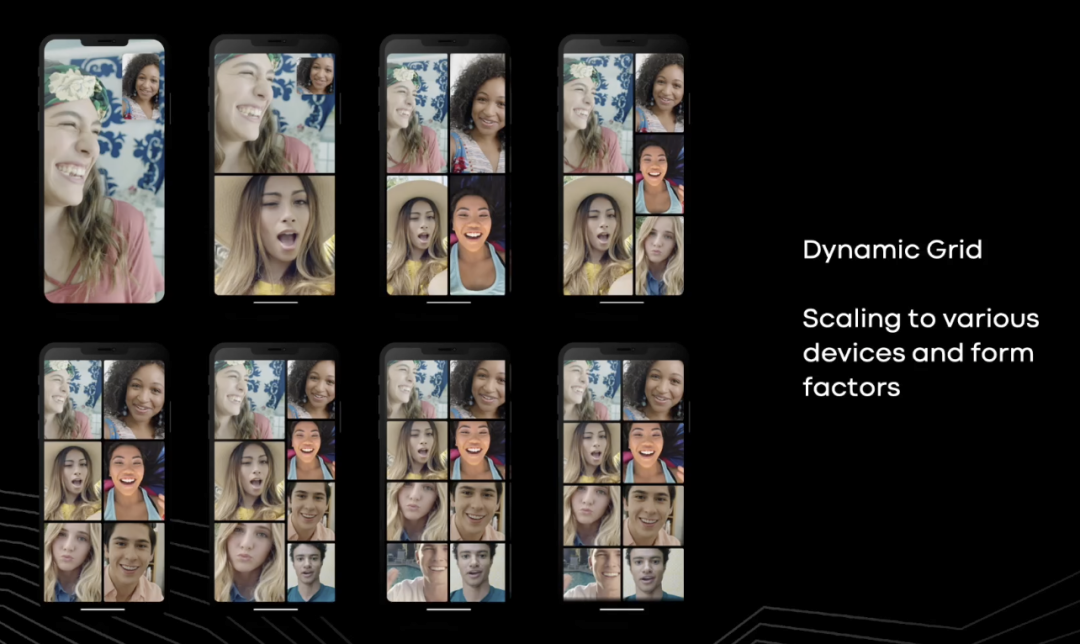 您希望在通话中看到所有朋友,它不仅需要根据纵横比以及参与者加入和离开通话来动态调整大小。它必须具有高性能,并避免可能因拉伸和溢出视频流而产生的 GPU 缓冲区副本。为了解决这个问题,我们创建了一个与平台无关的单一调用网格实现,并且可以从移动电话扩展到大屏幕显示器。我们使用C++实现并且集成到了所有平台。我们还利用 Web Assembly 来避免为 Web 创建自定义 Javascript 实现而的导致性能和代码重用问题。