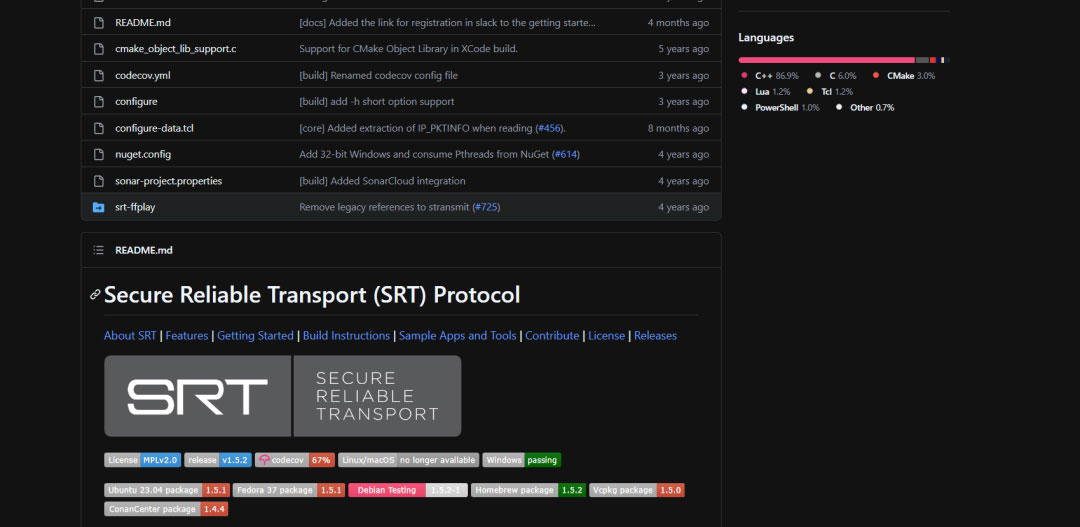 SRT(Secure Reliable Transport,安全可靠传输)是一种用于超低(亚秒)延迟的实时音视频流及通用批量数据传输的传输协议。SRT基于UDT协议,Haivision和Wowza合作成立了SRT联盟。SRT解决了复杂的传输时序问题,可以做到支持高吞吐量文件和超清视频的实时传输。SRT是一种开源技术,其开源仓库: