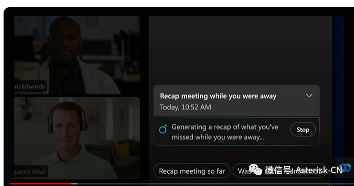 AI助手赋能的实时活动消息存储。如果会议中的一个人暂时离开,然后返回,AI助手会自动关闭屏幕,然后开启屏幕,并且把会议离开期间的文字返回给离开的人。确保能够文字获得会议的内容。