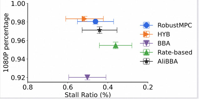 在短视频选流上,根据历史切片的下载时长,结合传输层信息以及网络类型来估算带宽,经过大量AB实验确定最佳参数,并解决质量和码率不匹配问题,帮助1080p播放降级率大幅降低。