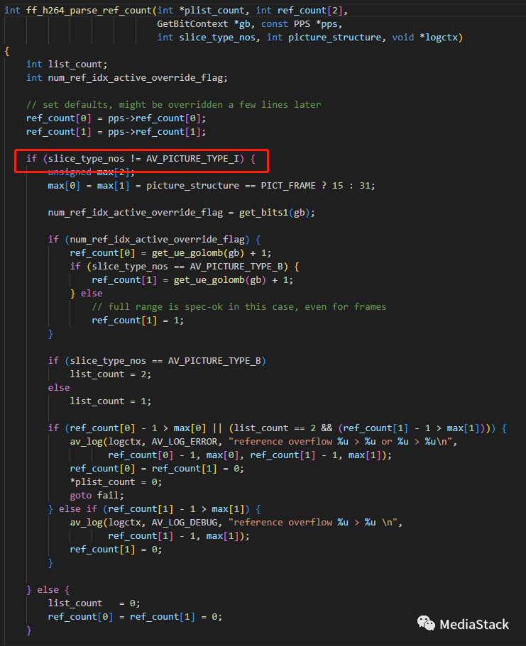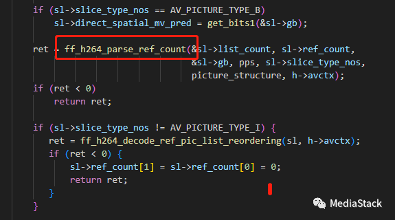 之后h264_slice_header_parse会调用ff_h264_parse_ref_count进行参考帧的获取: