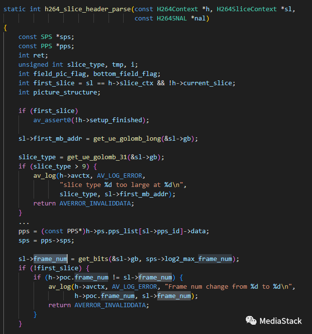其中和本文有关系的部分如下代码,解析获取frame_num相关值: