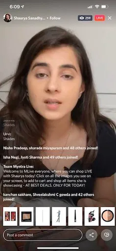 去年年底,我们还推出了 M-live,进军实时流媒体领域。该功能允许用户在 Myntra 应用程序上观看最受追捧的有影响力人士的时尚和美容直播。