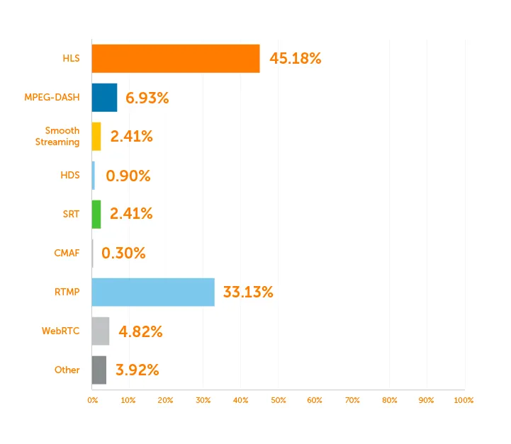 在过去十年的大部分时间里,RTMP 是互联网上默认的视频流方式。但随着最近 HLS 的兴起,我们看到 RTMP 的使用率在下降。即使在今天,大多数流媒体视频托管服务仍使用 RTMP 摄取。换句话说,广播公司以 RTMP 流格式向其选择的在线视频平台传输流媒体。然后,在线视频平台通常通过 HLS 将这些流媒体传输给观众。