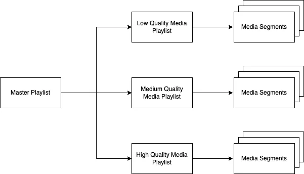 有 3 种主要结构:主播放列表、媒体播放列表和媒体段