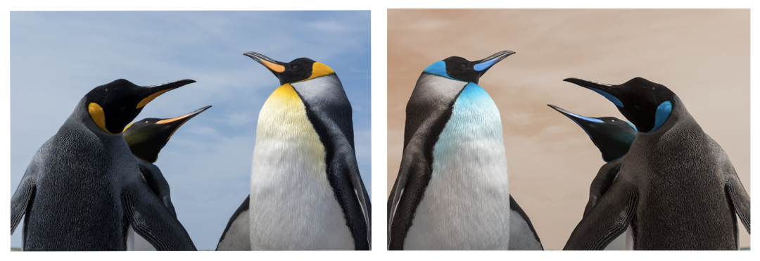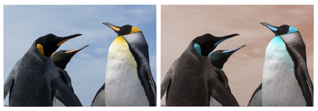 我们把 RGB 字面描述的分量顺序,称为字面序,将其实际存储的分量顺序,称为字节序。确定好色彩空间存储的字节序,是正确处理图像的前提,如果随意对各分量进行读取,可能会导致处理后的颜色出现异常。下图,即为使用 RGB 顺序读取字节序为 BGR 的图片的效果,此时,由于将 B、R 分量混淆了,得到了错误的图片颜色。