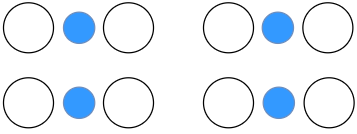 除了文字解析外,我们还可以结合图例来观察。如果用空心圆圈表示 Y 分量,实心圆(蓝色)表示 UV 分量,则 YUV 4:4:4 采样逻辑可以表示为下图(图例颜色不代表实际采样颜色):