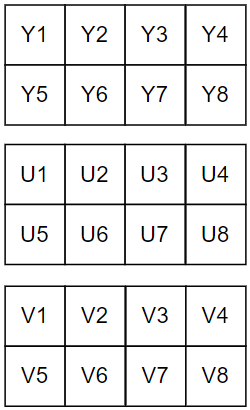 YUV 4:2:0 使用平面模式(Planar)存储: