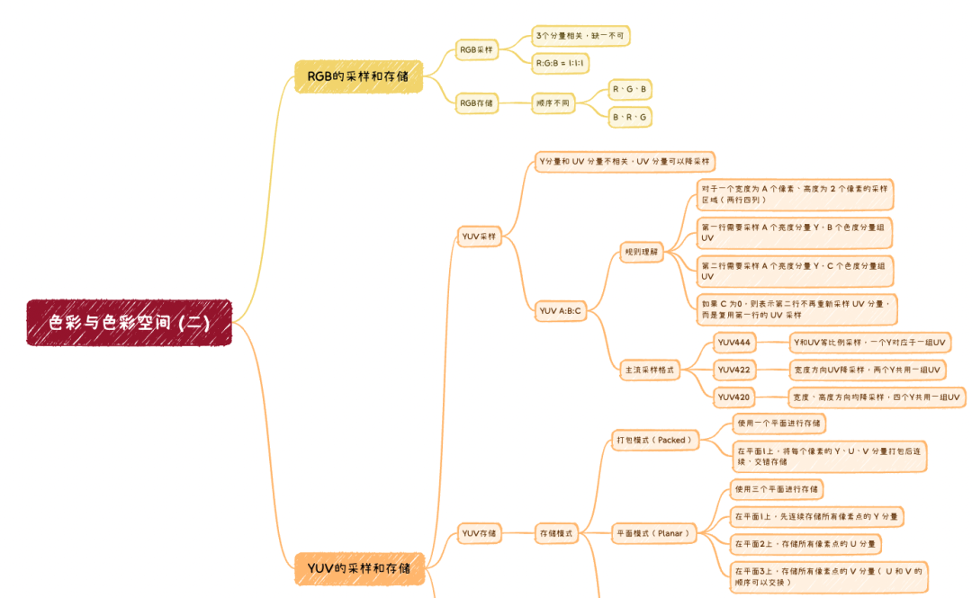 不得不说,相较于 RGB,YUV 的采样格式和存储格式还是比较复杂的,组合得到的 YUV 类型也是眼花缭乱,你此时或许已云里雾里。这么多格式和类型,该如何去记忆呢?