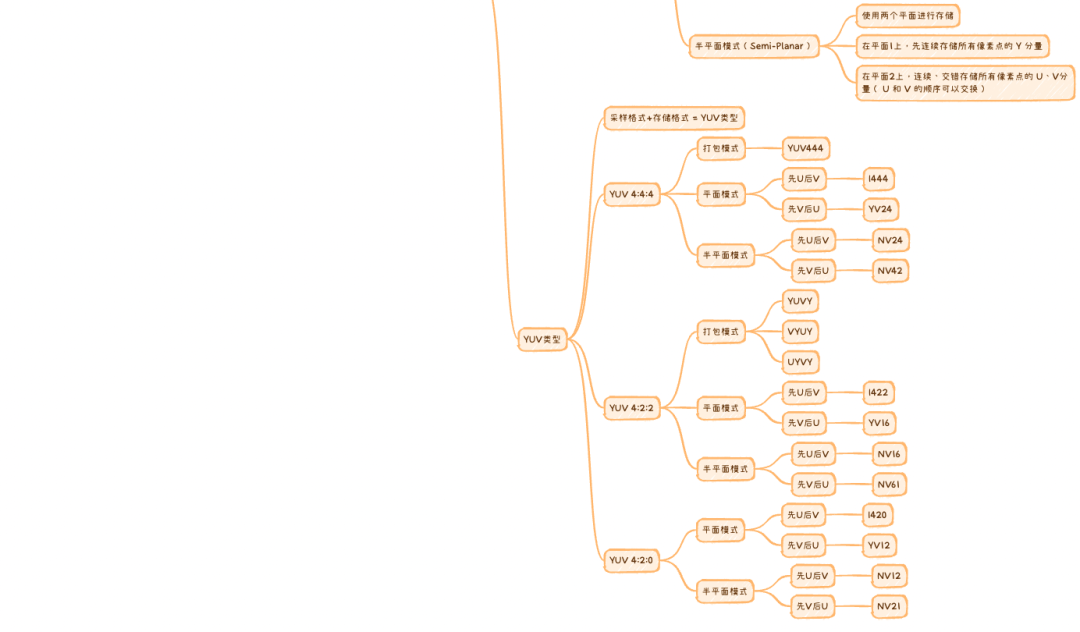 了解采样格式后,就需要考虑如何进行存储,YUV 的存储格式也有好几类,并且一种采样格式还可以选择不同的存储格式,不同采样格式搭配不同的存储格式,得到了不同的 YUV 类型,这些知识综合起来还是有一定理解和记忆难度的,大家跟着我的思路继续往下学习。