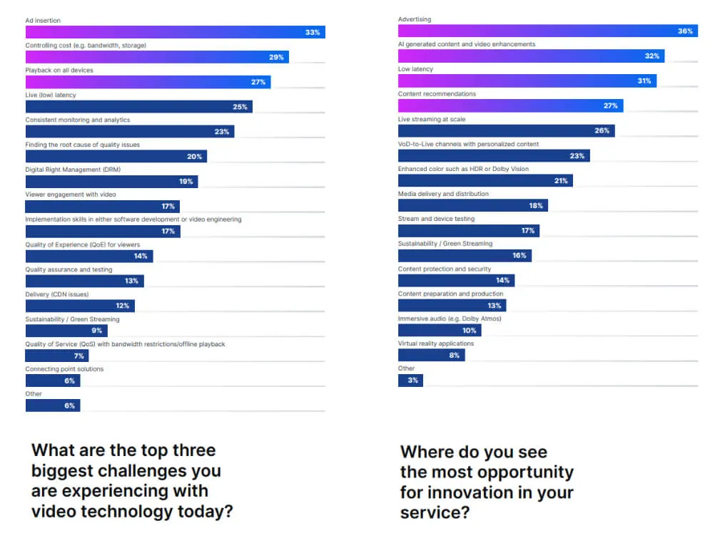鉴于近年来观众和流媒体用户的增加,解决直播延迟问题比以往任何时候都更加重要。在最新的 Bitmovin 调查中,由 42 个国家的视频开发人员和行业专家组成的 25% 的参与者认为低延迟是他们面临的最大挑战之一。这也是受访者认为服务创新机会最多的第三大问题。