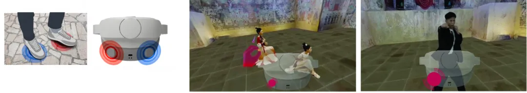 然而,三维只是人们获取真实感的起点, 为了获得更高维度的沉浸感,实验室联合PICO硬件团队研发了一款力反馈模组,该模组主要通过双通道的低延迟数据传输,震动头部对应位置以模拟作用力的反馈。观看者的空间位置变化和裸手交互触碰,都可以触发力反馈机制,甚至是一个拳击手的拳风也可以设计触发,身临其境的感觉莫过如此。并且经过主观体验,小编发现该项反馈机制还能很大程度上缓解虚拟与现实感觉不匹配产生的VR眩晕问题!这是沉浸式体验的一大步!