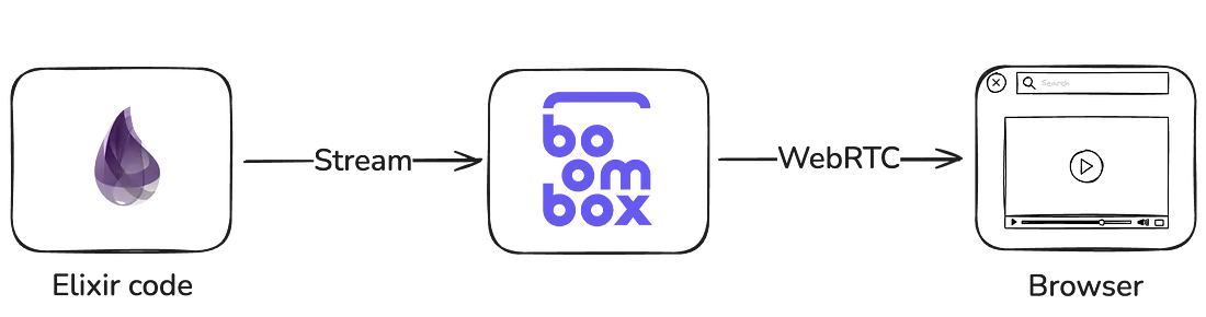 Boombox 还允许你在 Elixir 代码中与流进行交互。例如,要生成视频并通过 WebRTC 将其发送到浏览器: