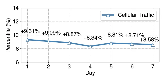 这表明,虽然 Wi-Fi 和蜂窝网络分别出现波动的概率很高,但两条网络路径同时表现不佳的情况并不常见,同时使用多条路径传输对减少网络波动和卡顿有较大潜力。