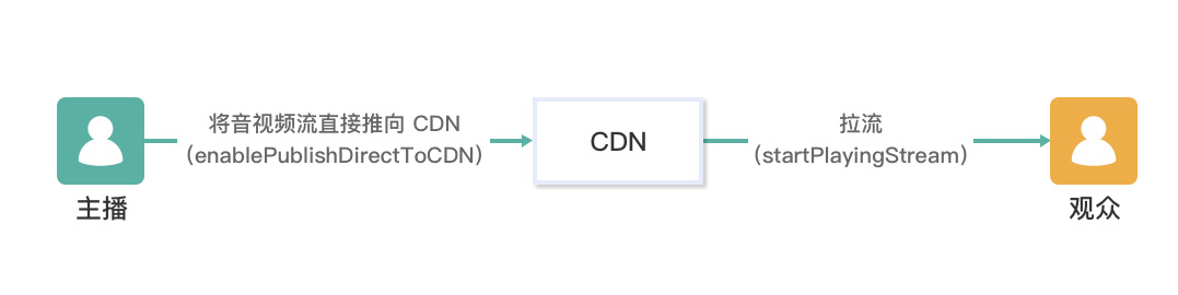 在推流前调用 enablePublishDirectToCDN 接口将音视频流直接推往 CDN。