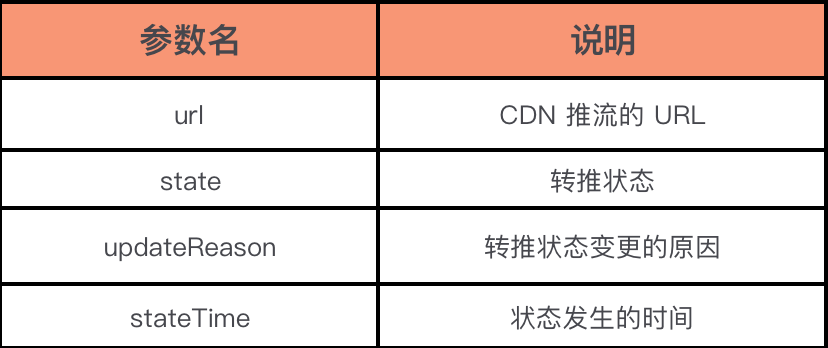 开发者可根据该回调判断转推 CDN 的音视频流是否正常: