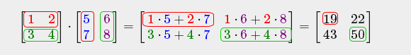 [1234]⋅[5678]=[1⋅5+2⋅71⋅6+2⋅83⋅5+4⋅73⋅6+4⋅8]=[19224350]