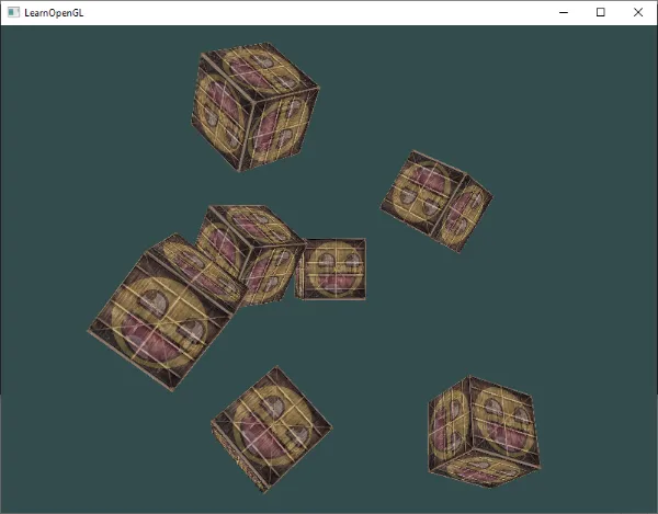 凭借这段代码,相机现在随时间围绕场景旋转。请随意使用半径和位置/方向参数进行实验,以了解此 LookAt 矩阵的工作原理。如果你遇到问题,请查看源代码。