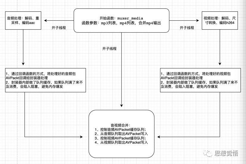 因为我们的目的是以实战为主,为了囊括之前所学的一些知识点,在这个实战中我们不仅仅需要实现音视频解封装提取、音视频解码、音视频编码、音频重采样这些功能, 我们还需要结合多线程同步等知识点做好生产者消费者队列缓冲控制。还包含例如类成员函数作为线程执行函数的使用等知识点。