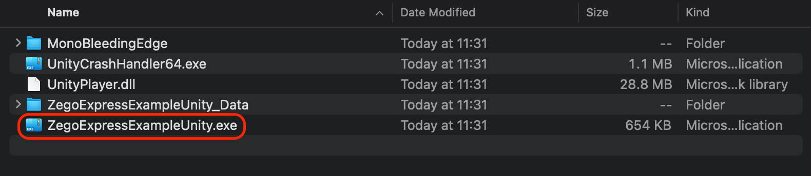 b. 在 Windows 设备上,单击工程中的 .exe 文件,即可运行。