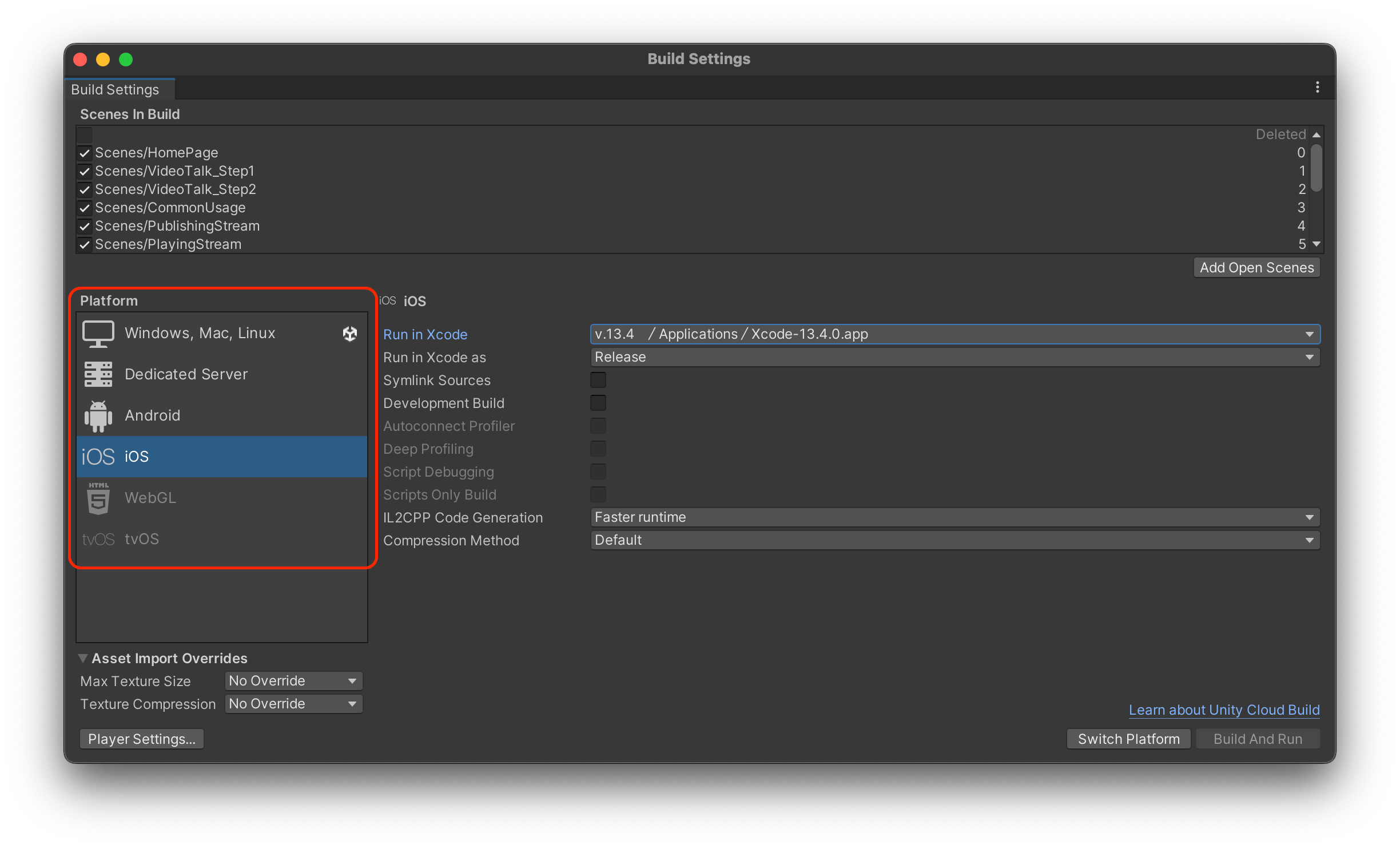 - 运行 iOS 示例源码要求:Xcode 13.0 或以上版本,iOS 9.0 或以上版本且支持音视频的 iOS 设备或模拟器(推荐使用真机)。