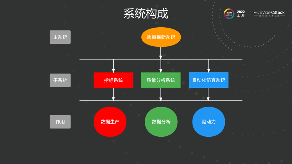质量推断系统主要是分为三个子系统。指标系统,主要负责数据生产;质量分析系统,主要负责数据分析;自动化仿真系统,可以将其理解为驱动系统,驱动数据生产到数据分析,同时也对外提供使用质量推算系统的入口。