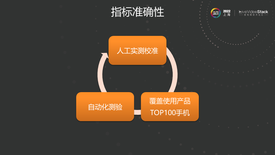 指标系统中最后一项是指标准确性,需要耗费大量时间。因为只有保证指标的准确,才能保证后续质量分析的准确性,所以这一阶段的工作非常重要。通过大量的人工实测校准各项指标,同时覆盖测试使用产品TOP100的手机,使指标统计和后续质量分析更具有代表性。另外也引入了自动化仿真系统对各项指标进行自动化测验,大大提高了测试效率。经过这三方面的工作基本保证了指标的准确可靠。
