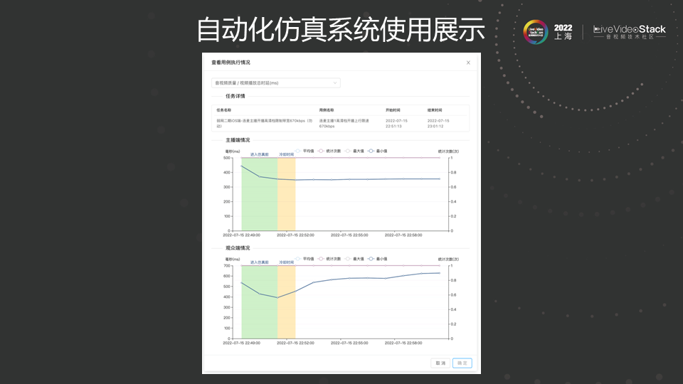 目前质量推断系统的闭环已经运用产品中,一开始提到的不同角色面临的质量问题也都得以解决。比如产品关注的可靠性问题,就能通过自动化仿真系统在产品上线前进行各种弱网的自动化测试;比如开发,就能通过多指标评价功能对模块进行分析和优化,检测算法的有效性;比如测试,自动化仿真系统便利各种弱网条件的执行情况,大大提高了测试效率;比如运维,通过质量推断系统能够实时查看产品全局的质量视图,随时分析指标情况;比如用户,能够衡量主播开播质量情况等等。
