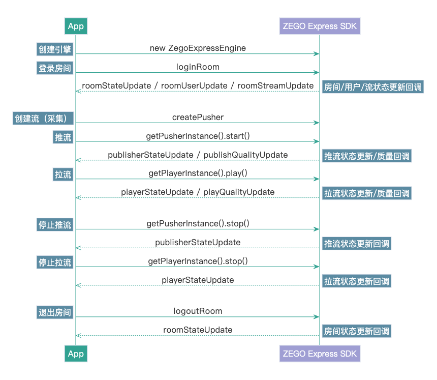 用户通过 ZEGO Express SDK 进行视频通话的基本流程为:
