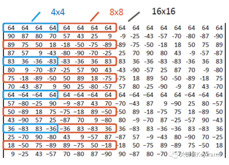 - 变换单元 TU 可采用 4×4 ~ 32×32 大小的离散余弦变换,此外还能支持 4×4 的离散正弦变换。
