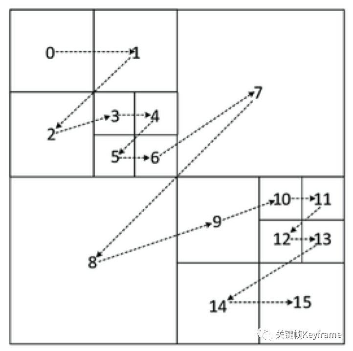 RQT(Residual Quad-tree Transform)技术是一种基于四叉树结构的自适应变换技术,它为最优 TU 模式选择提供了很高的灵活性。大块的 TU 模式能够将能量更好地集中,小块的 TU 模式能够保存更多的图像细节。根据当前 CU 内残差特性,自适应选择变换块大小,可以在能量集中和细节保留两者做最优的折中。与传统的固定块大小变换相比,RQT 对编码效率贡献更大。