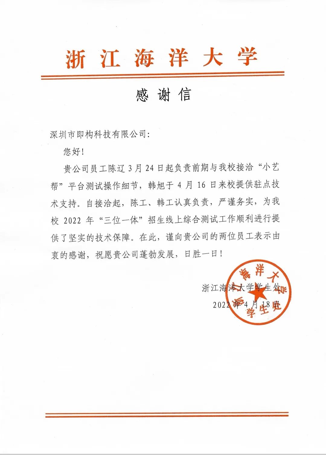 播种的过程是辛苦的,但尝到果实的那一刻,所有的苦涩都汇聚成了甘甜的滋味。小艺帮的工作人员用实例证明,只要愿意付出,就会拥有收获。在各院校的考试结束之后,小艺帮收到了不少学校的感谢信,每一封都言辞真切,收到信的同事都表示非常感动、骄傲。