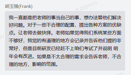 前期,商务经理作为第一人与高校负责人通过电话沟通交流学校的考试形式及要求,在介绍并给出大体的考试形式之后,再通过建立点对点的群聊的方式,由小艺帮技术支持与学校负责老师继续进行更详细的考试信息的沟通、配置考试后台、对学校机房网络进行压测,并让老师以学生的身份去体验考试,做到让学校对考试放心、对平台安心。