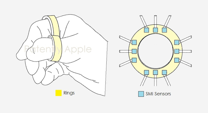单独将拇指和食指捏在一起可能无济于事。如下所示,将拇指和食指与Apple 获得专利的配件环捏在一起,在激活用户界面时会更有意义。不过,也可以使用“空中”手势,Apple 在该技术方面拥有多项专利。