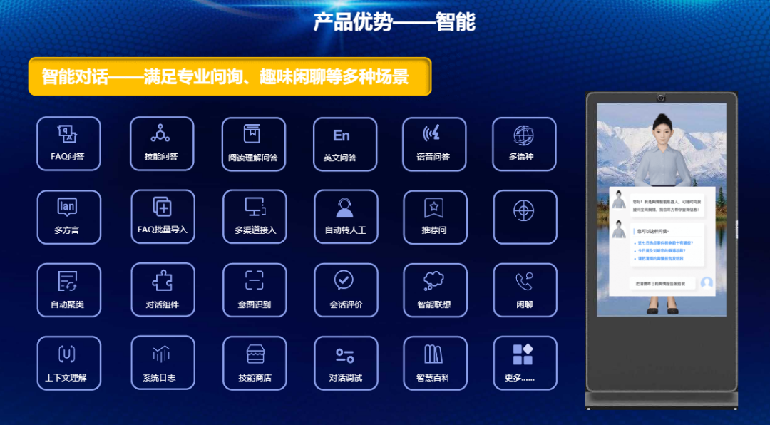 AI虚拟人智慧屏是基于基于虚拟人形像的可视化交互,结合多模态的信息输入和拟人化的交互体验形成的产品体系。