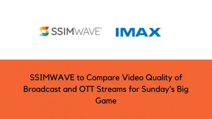 2023年2月7日–IMAX公司的SSIMWAVE®将展示哪些视频供应商为本周日的职业橄榄球冠军赛带来了他们的 “A Game”,届时其荣获艾美奖的技术将对本周日比赛的广播和OTT流的视频质量进行比较。