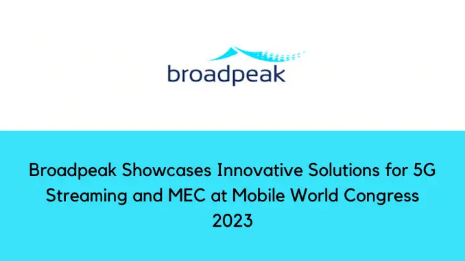 2023 年 2 月 9 日:在 2023 年世界移动通信大会上,Broadpeak 将重点介绍通过移动网络传输视频的尖端解决方案。利用 Broadpeak 的解决方案,运营商可以控制与 OTT 视频传输相关的不断增加的网络成本和流量高峰问题,改善他们对环境的影响,并最大限度地提高移动网络的价值。