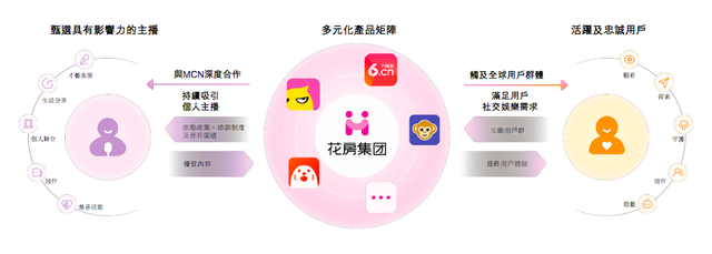 据花房集团的招股书显示,他们旗下的产品有花椒直播、花吱、六间房以及海外社交产品HOLLA、Omega、Camsea、Monkey。