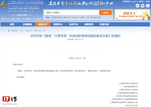 2 月 27 日消息,据上海市科学技术委员会网站,上海市科学技术委员会等现已印发《推进“大零号湾”科技创新策源功能区建设方案》(以下简称《方案》)。