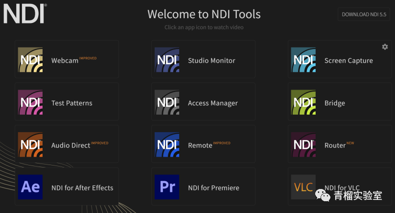 NDI提供了一套免费的工具,工具有Access Manager、Bridge、Remote、Studio Monitor、TestPatterns等。